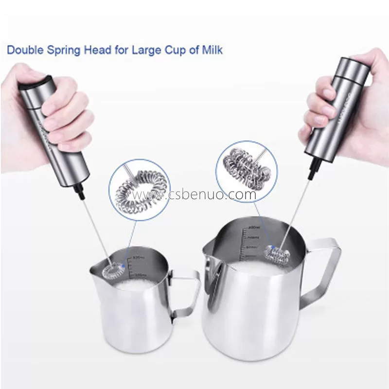 4. Two Whisks Design: Double spring whisks for large cups, single spring whisk for small cups. Imediate change and easy to be cleaned.